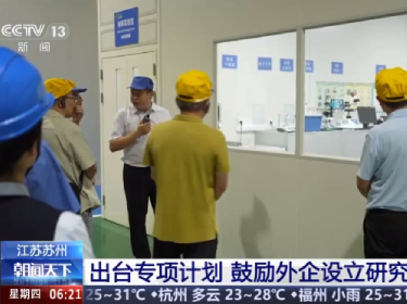 9月26日,中央電視臺13套《朝聞天下》欄目,播放了蘇州出臺專項計劃,鼓勵外企成立研究院的新...