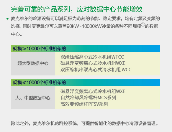 麥克維爾關(guān)注數(shù)據(jù)中心行業(yè)的發(fā)展,幵致力于為客戶提供穩(wěn)定可靠、高效節(jié)能的制冷系統(tǒng)解決方案,從而幫助客戶降低運(yùn)營(yíng)成本。